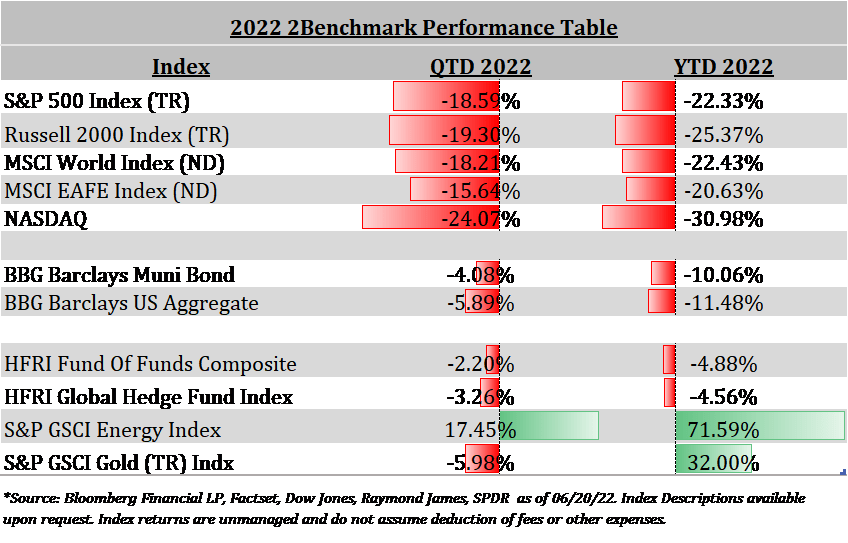 Elevated inflation readings have been present for well over a year, with Fed Chairman Powell and economists only recently abandoning the transitory label. Massive injections of liquidity following the COVID-19 induced economic shut down and resulting supply chain disruptions initially spawned persistent increases in food, energy, and many durable goods. Housing prices soared as low interest rates spurred new home purchases and housing starts while rents simultaneously increased. The Fed remained extremely accommodative well into 2022, adding fuel to the burning coals. Vladimir Putin’s imperialist invasion of Ukraine quickly sent oil prices soaring as Russian supplies were almost immediately sanctioned by many of the world’s largest economies. Additionally, we have experienced extremely low capital investment in the energy complex and are currently at decade low rig counts as policymakers have continued to push more clean energy initiatives, resulting in a lower amount of institutional capital in the space. China’s zero tolerance Covid policies and corresponding economic shutdowns have further hampered supply chains. Throw it all together and voila, we get the recent 8.6% annualized inflation reading and gas prices over $5 per gallon. Not a macro environment that risk assets respond positively to.