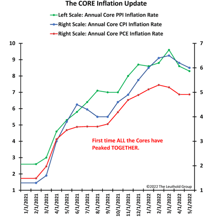 Not all the news appears to be bad. We have seen prices in other commodities, including agricultural, soften and industrial commodities weaken. Additionally, while the headline CPI numbers have soared, core inflation numbers have moderated in the last two months.