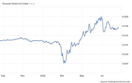 Global destabilization remains at the forefront of the global economic conversation, ushered in by the unfortunate war between Ukraine and Russia. Ukraine is the 4th largest supplier of wheat and a large exporter of other food resources; the average American will continue to see pressure in the supermarket as this conflict continues. The sanctions levied against Russia have not had the anticipated effect needed to bring them to the negotiating table as their countermeasures seem to be holding up. Their decade-long work to reduce their foreign debt obligations by nearly half, coupled with a shift to a quasi-gold standard to peg their currency have given them a stronger ability to withstand the sanction. To put it into greater perspective, at the start of the conflict, the Russian Ruble had depreciated from 80 to roughly 120 rubles for every U.S. dollar, but this has since reversed and the ruble has jumped 112% against the dollar since March lows, with one U.S. dollar now being only worth ~58 rubles, putting it above pre-conflict exchange rates. With this perceived stability from Russia, it’s hard to imagine this conflict will end anytime soon.