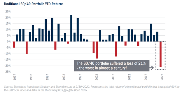 If one word could be used to describe the markets in 2022, tumultuous would be the first that comes to mind. High inflation, slowing growth and monetary tightening largely defined the global economy throughout the year. It was the worst combined performance for domestic equities and bonds since 1969, with double-digit negative returns in both asset classes. As correlations between the two asset classes spiked dramatically, the traditional 60/40 bond portfolio ended the year with a loss of 21%, the worst results in nearly a century.